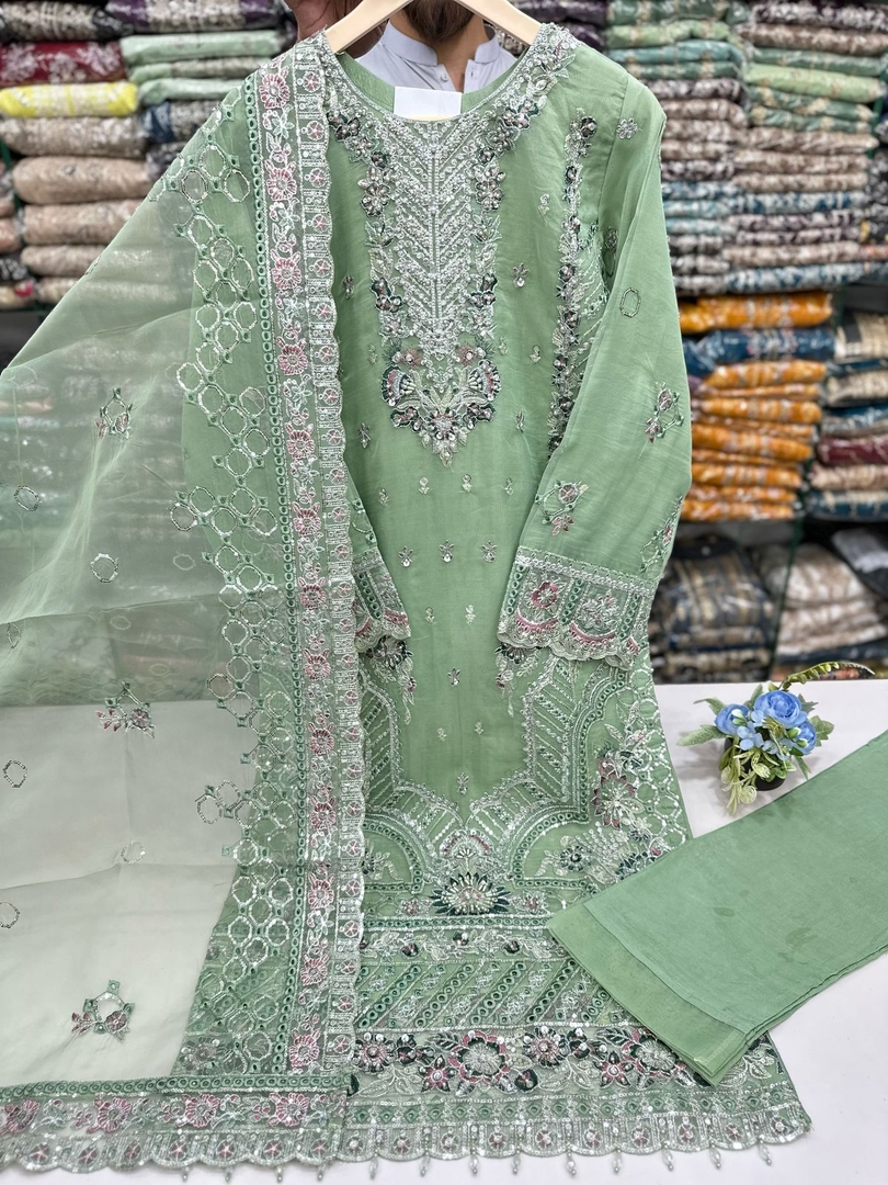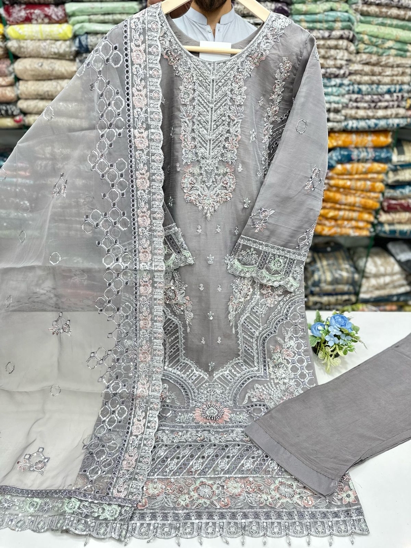 New Arrival For Ladies Stuff 𝐎𝐫𝐠𝐚𝐧𝐳𝐚 Cut Work Style heavy Tila Thread Sequence And Adda Work Trouser In 𝐆𝐫𝐢𝐩 Stuff Heavy Embroidered Dupatta In 𝐎𝐫𝐠𝐚𝐧𝐳𝐚 Stuff Size (Small.Medium.Large)