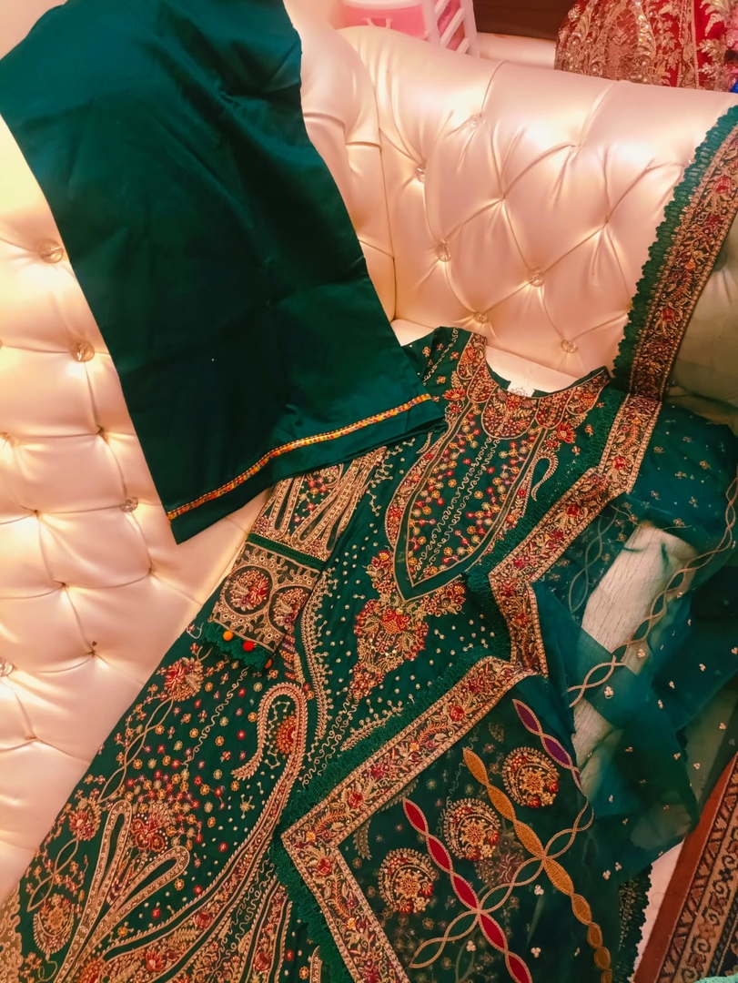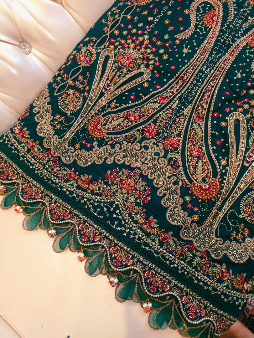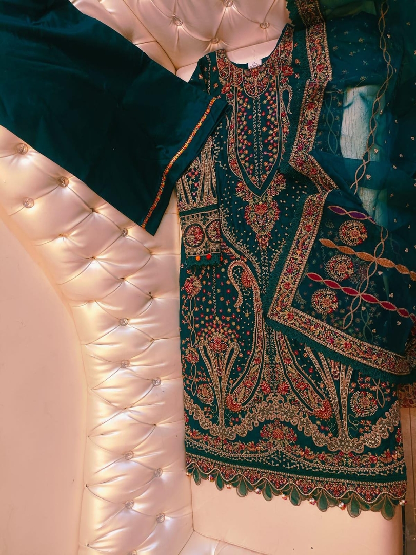 Description: Make a statement at your next event with this beautifully crafted Partywear Lawn Suit, combining elegance with comfort for the perfect festive look. The lawn frock features intricate detailing and a flattering silhouette, offering both style and breathability for seasonal celebrations. Paired with a sleek lawn trouser, this outfit ensures a graceful and comfortable fit. The look is completed with a luxurious organza dupatta, adding a layer of sophistication with its soft sheen and delicate finish—ideal for special occasions. Perfect for festive gatherings, parties, or evening events, this outfit blends traditional charm with modern flair.
