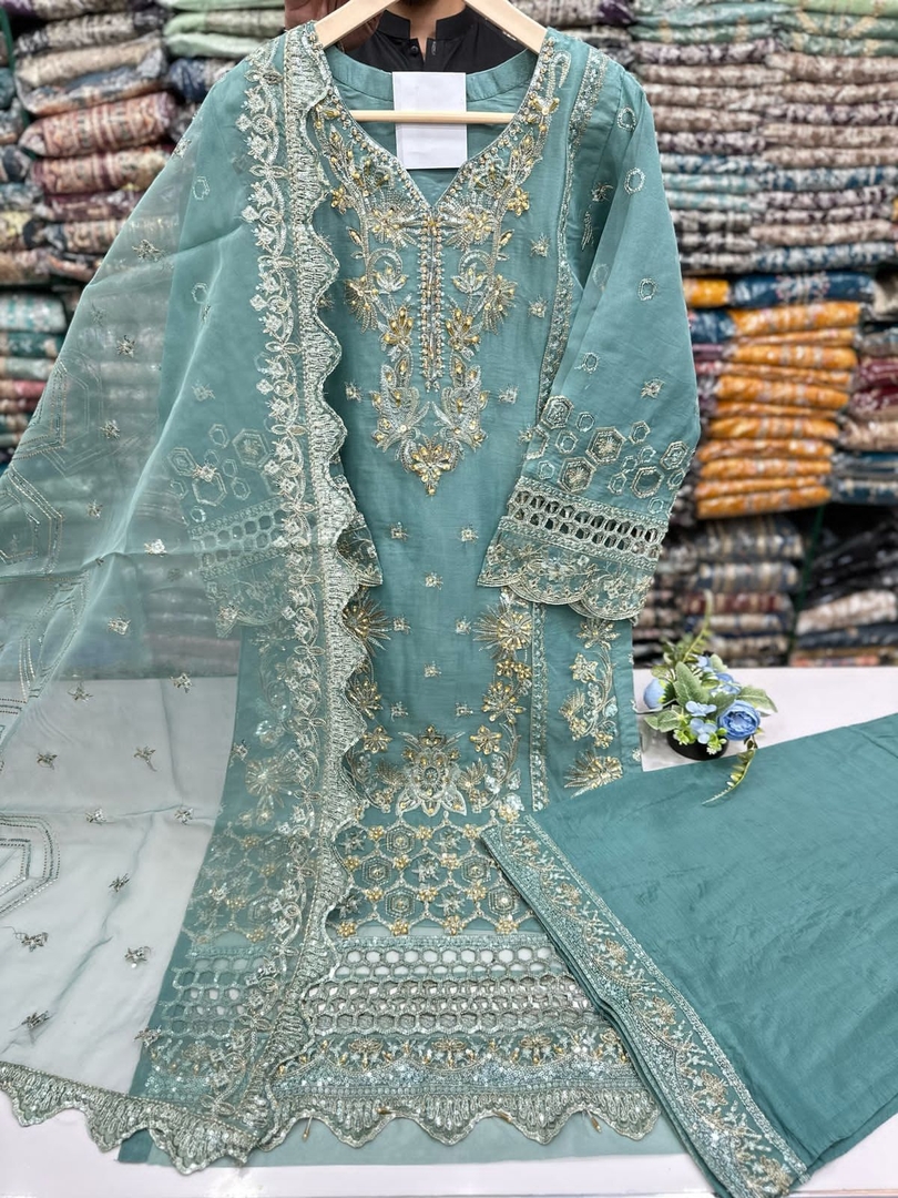 New Arrival For Ladies Stuff Organza Heavy Tila Thread Sequence And Adda Work Plazo In Grip Stuff Embroidered Dupatta In Organza Stuff Size (Small, Medium, Large) Available.